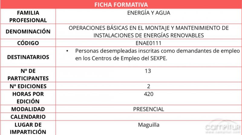 Maguilla acogerá un curso sobre montaje y mantenimiento de instalaciones de energías renovables